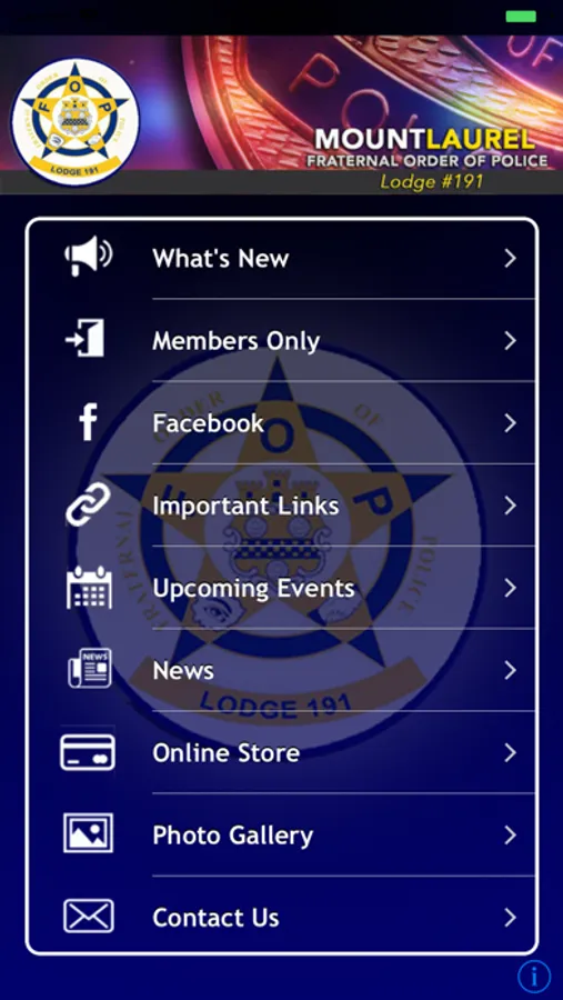 The official mobile app for the Mount Laurel Fraternal Order of Police: Lodge 191. Features include: