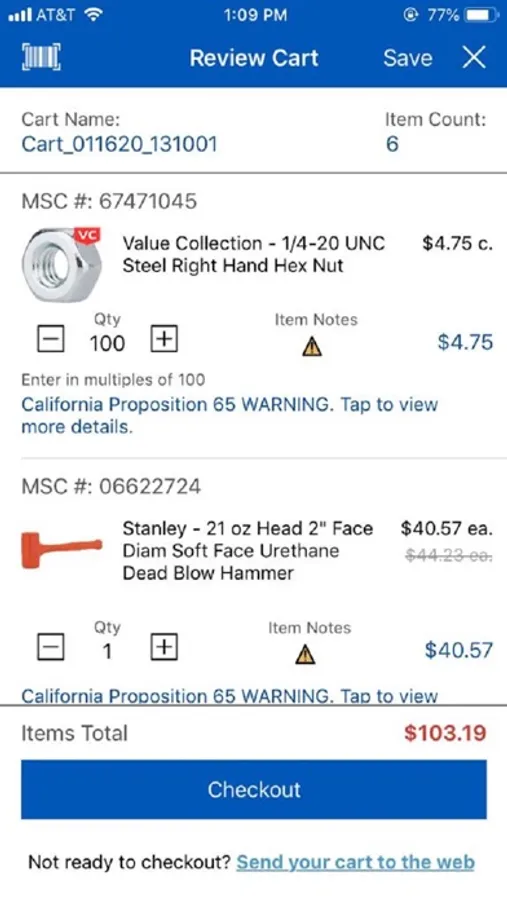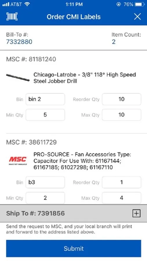 The ControlPoint app powered by MSC, is designed to make maintaining stocking levels and order replenishment quicker and easier. Use the app to cut costs and get better control over your inventory by placing orders on-the-go right from your mobile device without having to log into mscdirect.com.