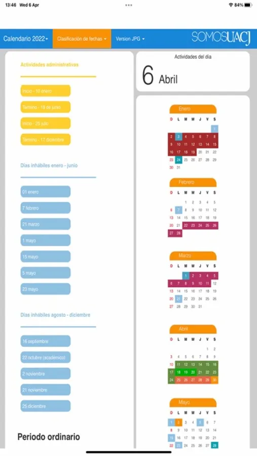 - Enlaces al Calendario y a otros servicios que ofrece la Universidad.