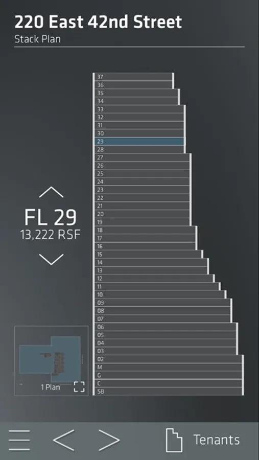 • Interactive Stack Plan to select individual floor plans