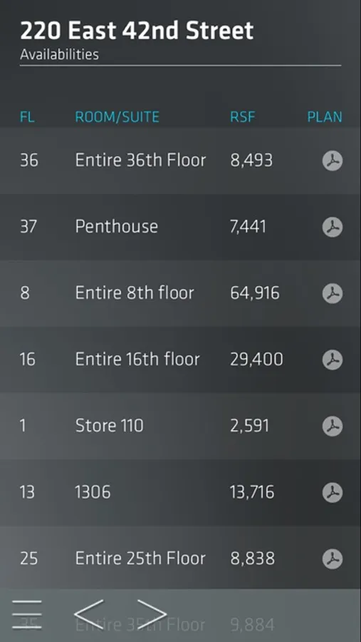 • Listings of available floors in all buildings