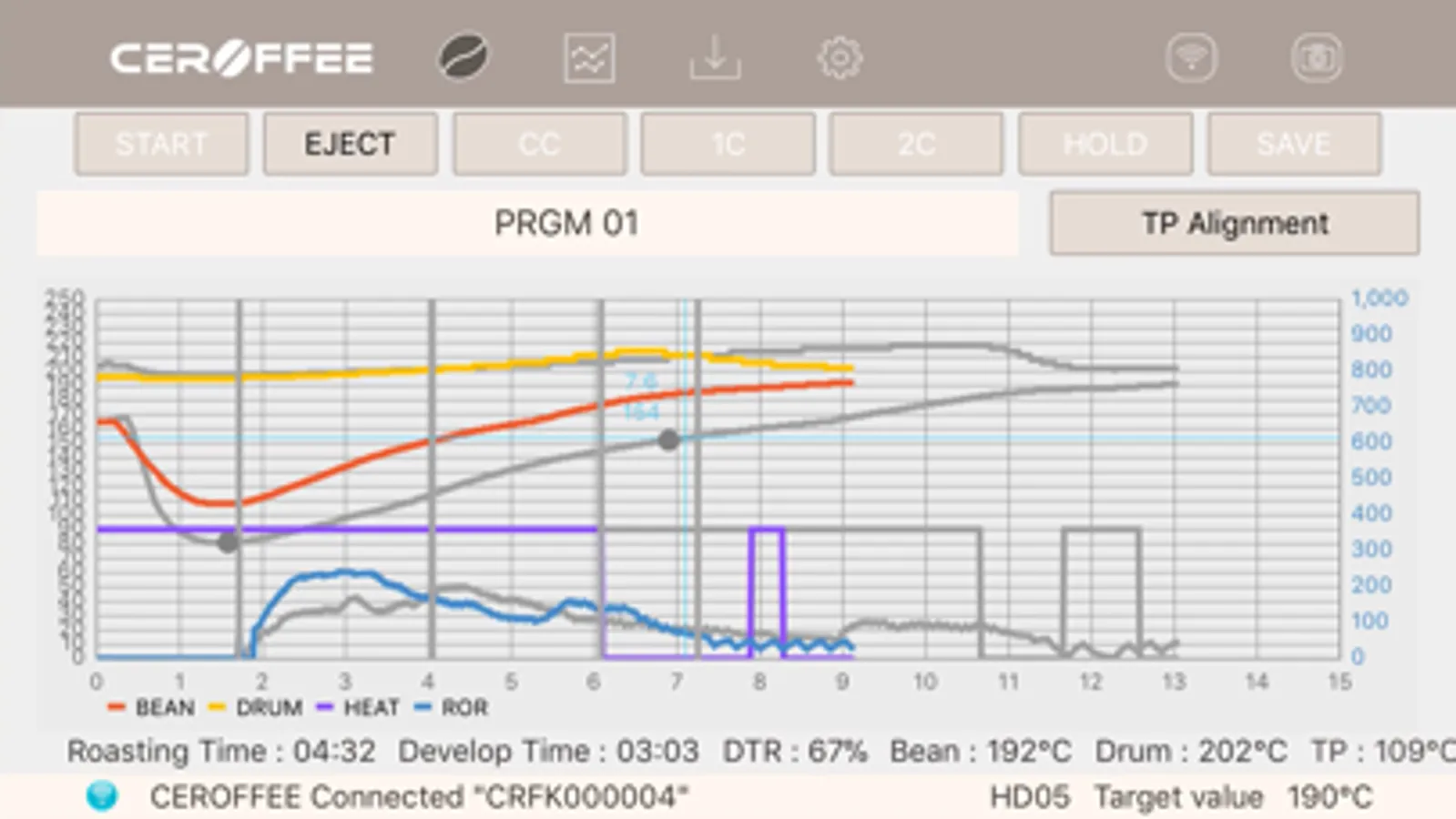 2. Automatically display important data for roasting such as TP, ROR, DT, DTR