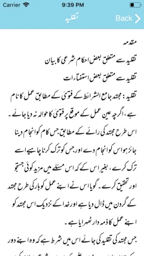 Jadeed Fiqhi Masael Masael (Urdu) is an iOS application which let users read the book "Islamic Laws" of Ayatullah Sistani in urdu.