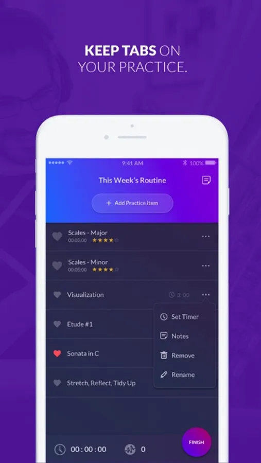 Practice Planning… Recording… Metronome… Drone Generator… Timer… Note Taking… Statistics… Do away with the random combination of music practice apps in your arsenal.