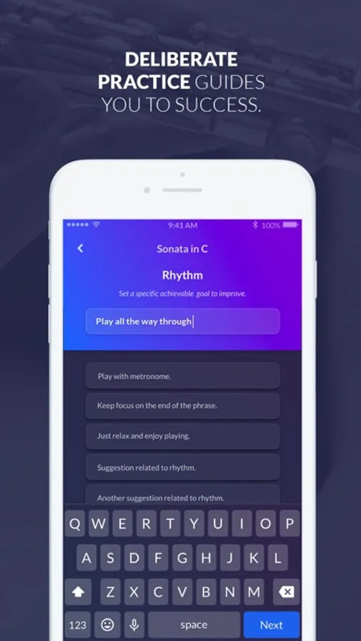 "Inspired by my cognitive science degree and the challenge of an international symphony career, I created this app to help any goal-oriented musician make faster progress and enjoy the process"