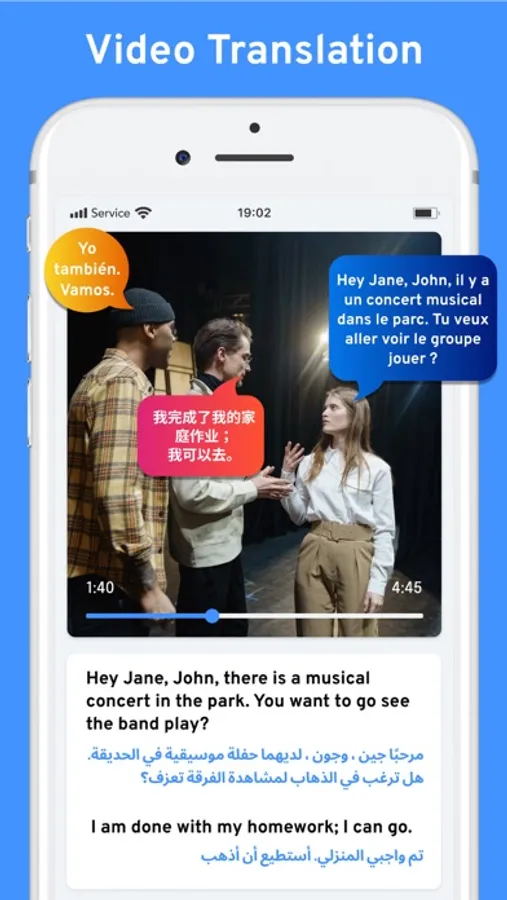 Users can directly import photos from the gallery or take live pictures using a phone camera for image translation. The language of the scanned text will be automatically recognized, reproduced directly on the picture, and users can translate it by simply tapping the language translate button. The text-to-speech technology in this app offers you to listen rather than read the content and helps save time.