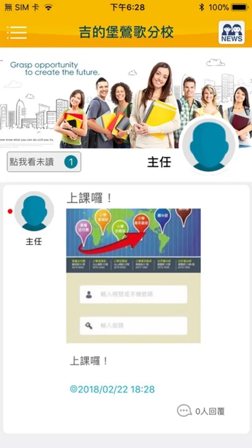 鶯歌吉的堡APP提供親師互動平台以及家長個人化的貼心服務,舉凡班務訊息、親師溝通、學生到離班點名、大小測驗成績紀錄等,讓家長更加了解學生的學習狀況。