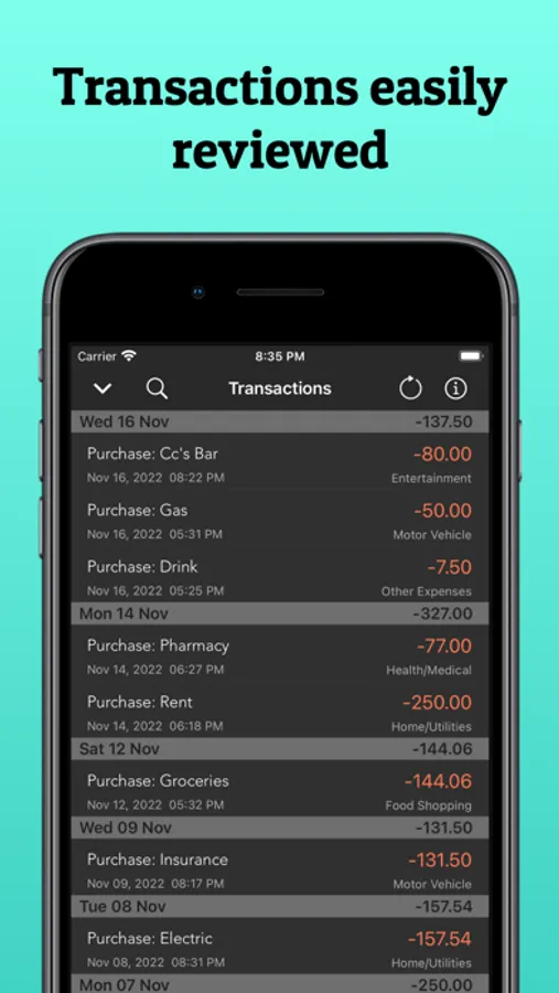 • Categorize your spending the way you want. You are not locked into an auto categorization algorithm with a mind of it's own.