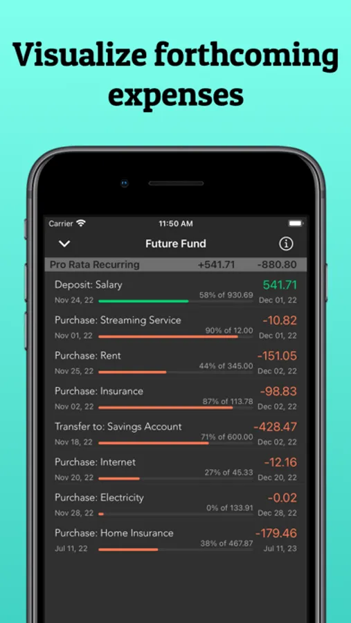 CashTracker Pro has recurring payments, allowing your regular payments to be entered automatically.