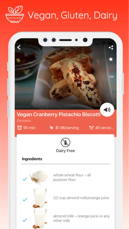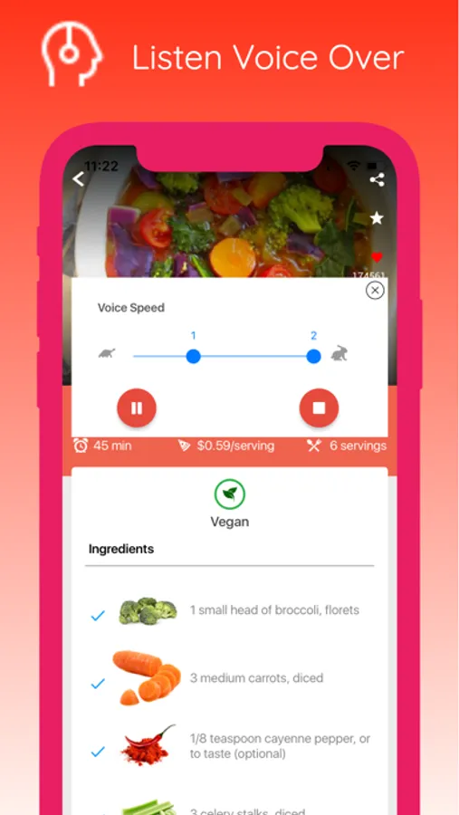 5) Voiceover - Listen step by step very intuitive ingredients and direction for each recipe. Easy while you're cooking.