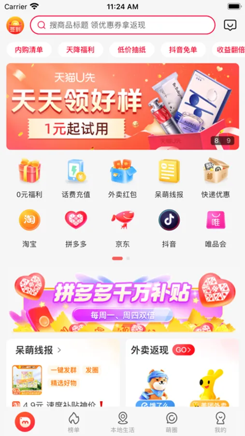 海量无门槛优惠信息,每天上新,个人洗护、水果蔬菜、进口食品,各类优惠应有尽有。