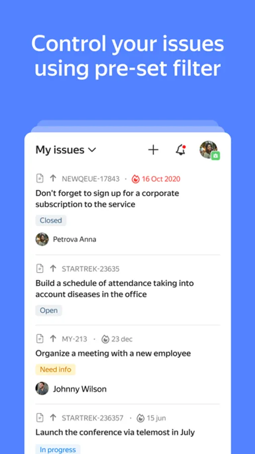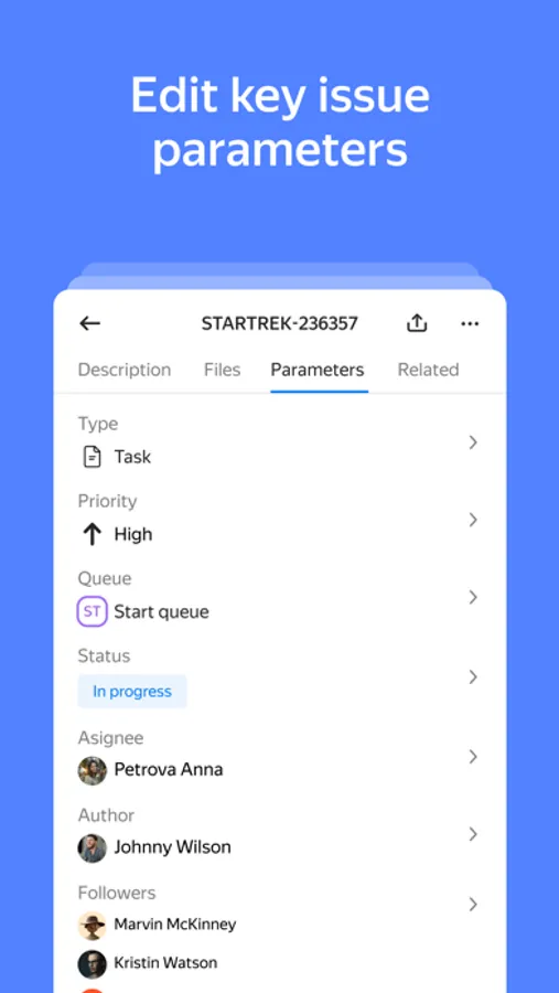 The Yandex Tracker mobile app is for those who need to stay in the loop on work processes and be able to work at any time: