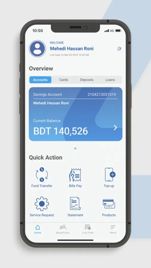 - Snapshot of your accounts, cards, deposits and loans in one screen