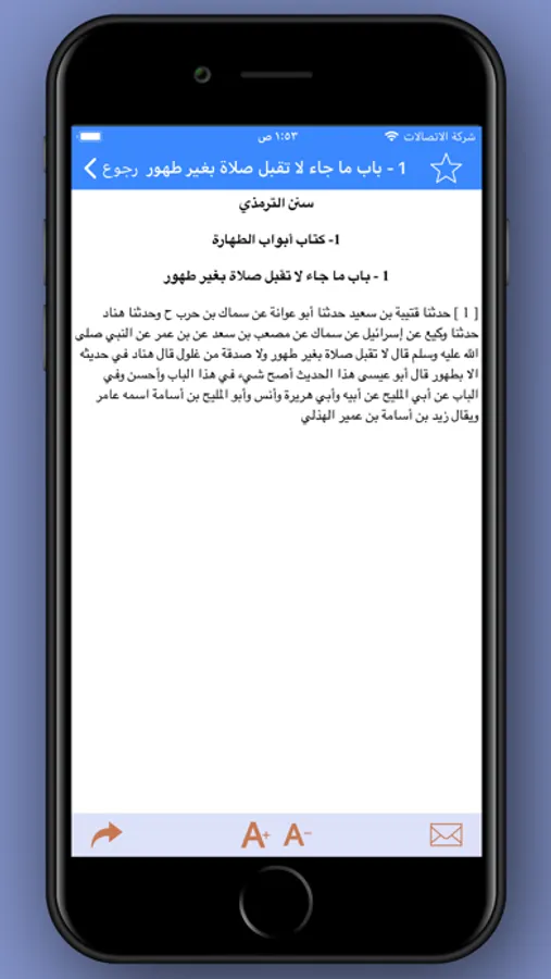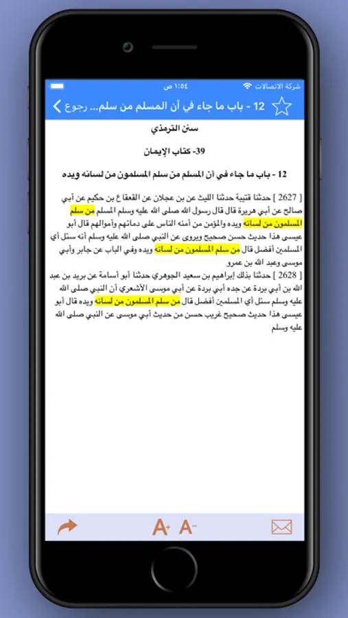 يمكنك أيضا إرسال الأحاديث بالبريد الإلكتروني أو مشاركتها بتطبيقات التواصل الإجتماعي مع الأهل و الأصدقاء بمجرد الضغط على زر.