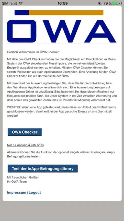 Mit der ÖWA-Checker App bietet die ÖWA registrierten Nutzern die Möglichkeit, die im Mess-System eingehenden App-Nutzungsdaten Ihres Endgerätes als Protkolldatei anzufordern. Der ÖWA-Checker dient zur Unterstützung und Verifizierung der Integration der Library in Ihre Apps.