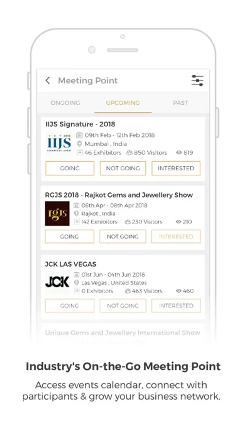 An essential business networking platform with up-to-date trade-fairs calendar. It lets you access schedules, participants list of global jewellery exhibitions and shows. Exhibitors can get listed and broadcast business presence. attract potential customers to visit there stall. Also visitors can schedule advance meeting with preferred suppliers.