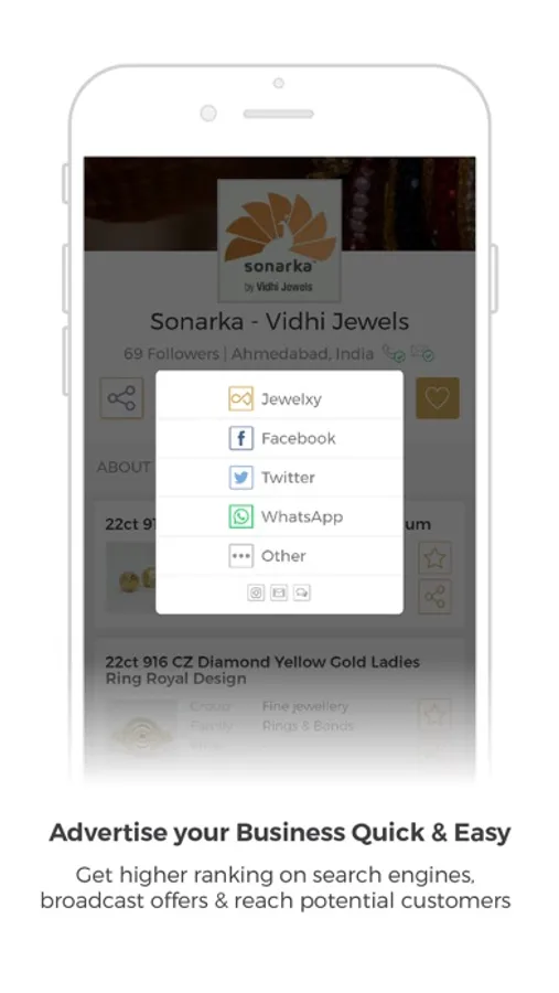 Jewelxy brings global marketplace directly on to your mobile phone, takes away the complications of digital marketing & facilitates two-way search that empowers business to pursue desired results.