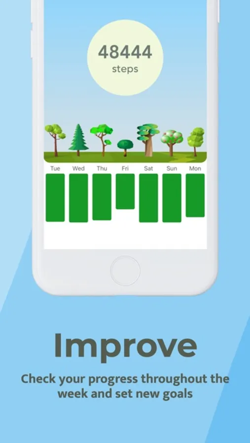 Streep is a pedometer that also helps you improve your ecological footprint. The daily challenge is to grow the tree of your choice, reaching your steps goal: the more you walk, the more the tree will grow, but the growth will slow down according to your use of the machine. Streep will motivate you to have a better personal ecological footprint during the day; when you strike a good balance between steps taken and machine use, your tree will complete its growth.