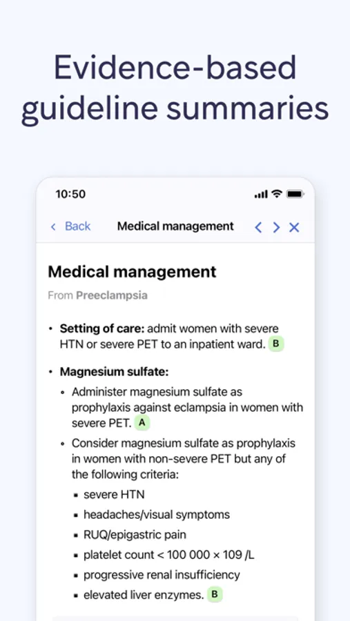 • Find what you need, faster, with condensed summaries of evidence-based clinical guidelines.