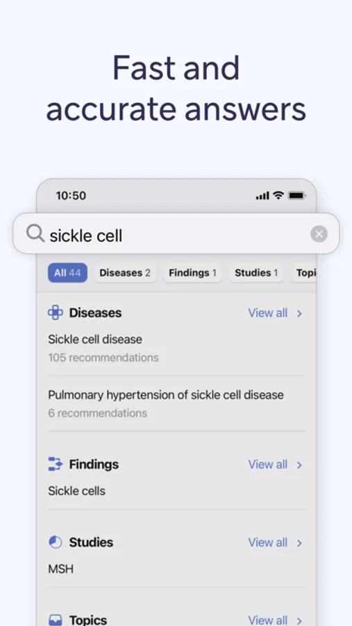 • Quickly reference landmark trial summaries for 500+ diseases, all in one place.