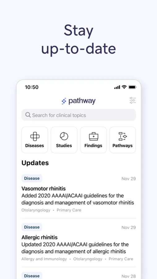 • Stay up-to-date with notifications for practice-changing updates tailored to your specialty.