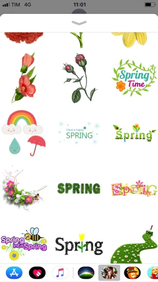 Open any message you have and at the bottom of the screen, you will see buttons of your app list out. If you saw this app, please tap on it and the stickers collection will show up, if not, please slide to the left to find this app.Â