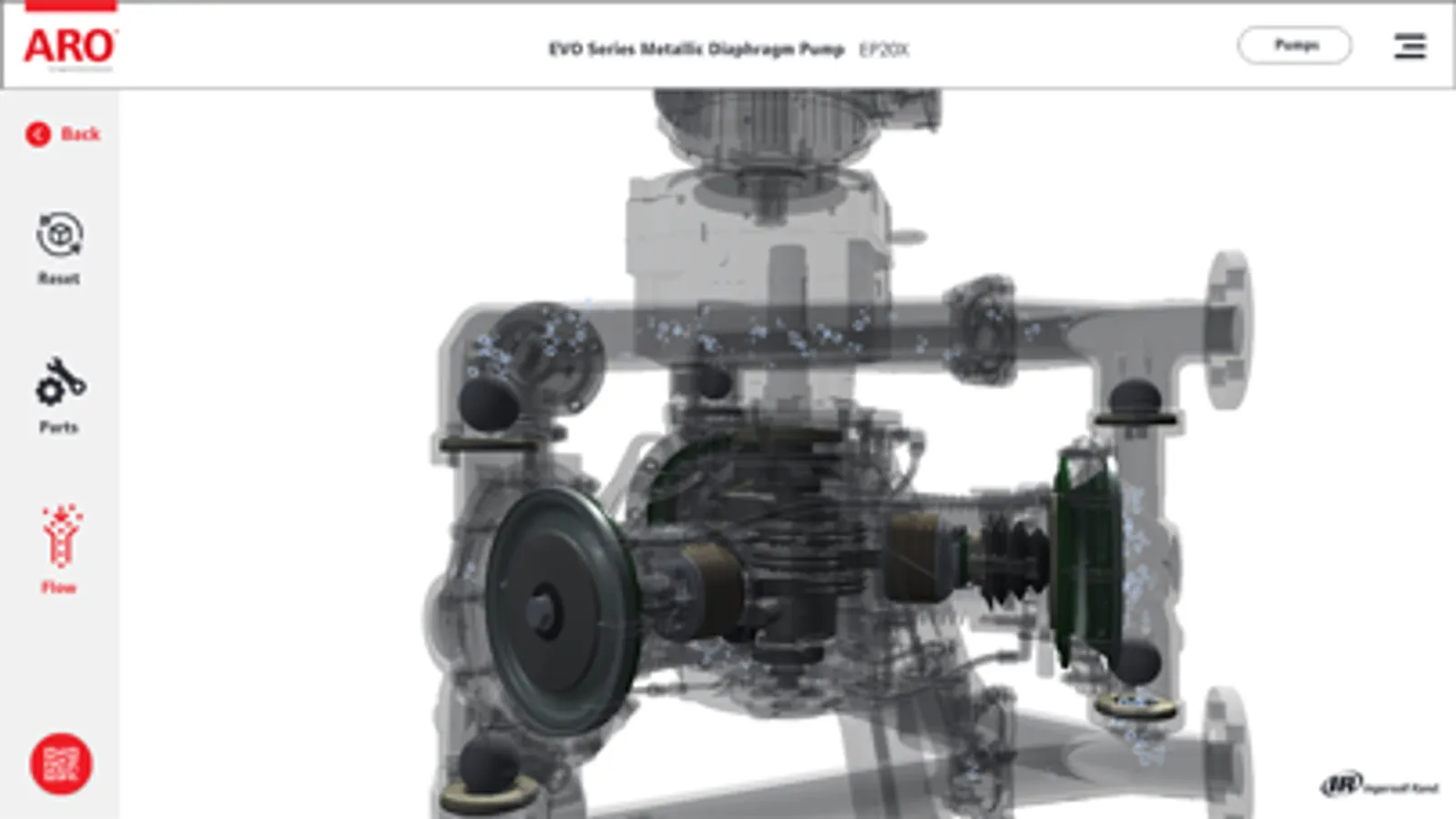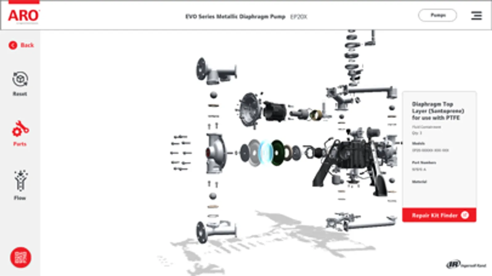View electric diaphragm, air operated diaphragm and piston pumps in full detailed operation in see-through mode, or select parts and gather extensive material information on every part in our exploded mode. With offline capabilities, access this handy reference information whether you’re in the office or on the factory floor.