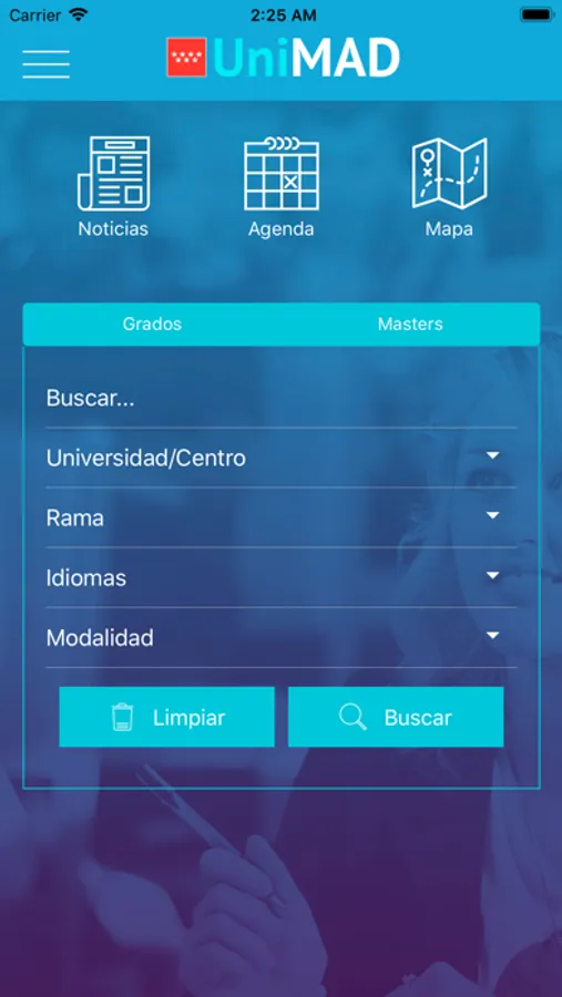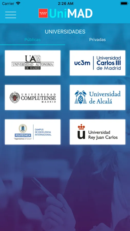 ¡Descárgate la nueva app de la Consejería de Educación, Juventud y Deporte de la Comunidad de Madrid! Con ella podrás acceder de forma fácil y sencilla a toda la información relativa a estudios oficiales de Grado y Máster que se imparten en las universidades y en los centros de enseñanzas artísticas superiores públicos y privados de la Comunidad de Madrid; descripción de las enseñanzas, información de salidas profesionales, notas de acceso…