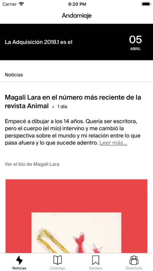 Andamiaje es una iniciativa curatorial que busca apoyar a artistas emergentes a través de un proyecto dirigido a un grupo exclusivo de miembros (20 coleccionistas) a los que se les ofrece formar parte de una nueva manera de coleccionar arte joven, al tiempo de hacerse de un grupo de obras seleccionadas por Patricia Martín