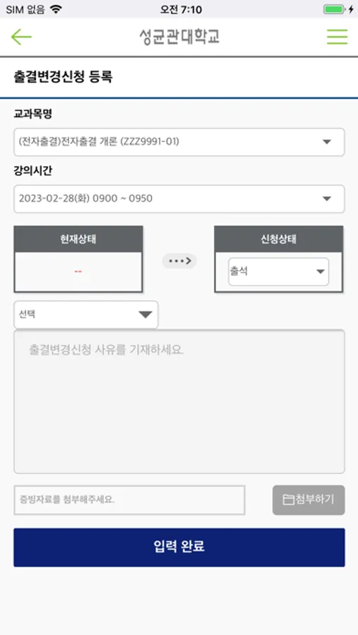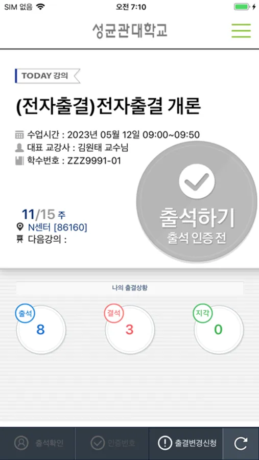 4. 출결 변경 신청 : 교수님께 출결 상태 변경을 신청하고 그 결과를 조회할 수 있습니다.