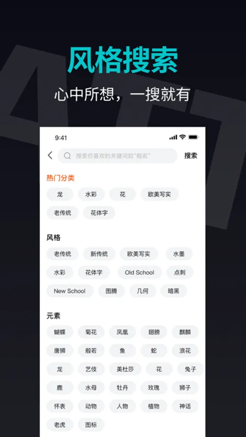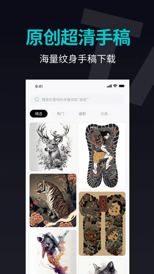 一键搜索自己需要的纹身手稿,欣赏和下载;