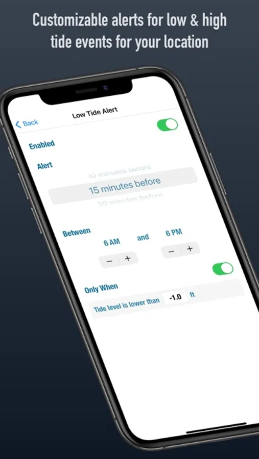 Customizable Tide Alerts, offering tailored notifications to suit your schedule.