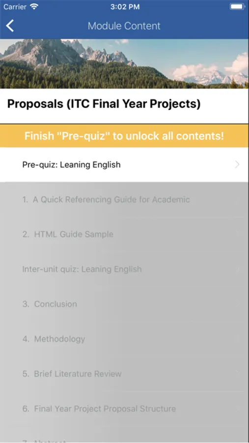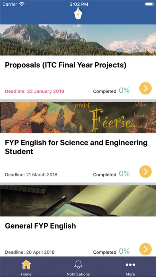 "The app has two major features: English language resources for Final Year Project (FYP)/Capstone projects and management of FYP/capstone project progress. The app offers general and discipline-specific English language resources to help undergraduate students at different stages of their FYP/Capstone projects. It includes learning about the major sections of a project proposal specific to the field of study, grammar and sentence structure tips, and skills needed to verbally present and defend their thesis. The app enables users to manage and keep track of their FYP/Capstone project ideas and in-app learning progress, make to-do lists, add reminders, bookmark learning content, receive and access relevant resources, communicate with their project supervisors, and more.