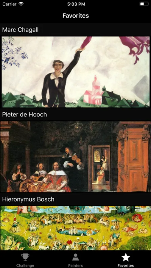 In application we provide short information on artists. You can make favorite each work of artist and it will appear in the Favorite screen, where you can enjoy them whenever you want.