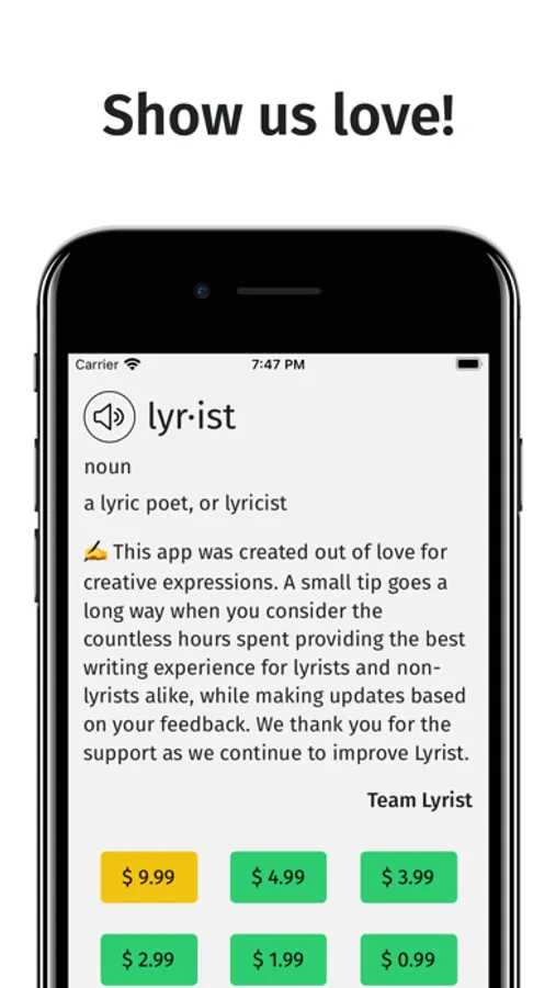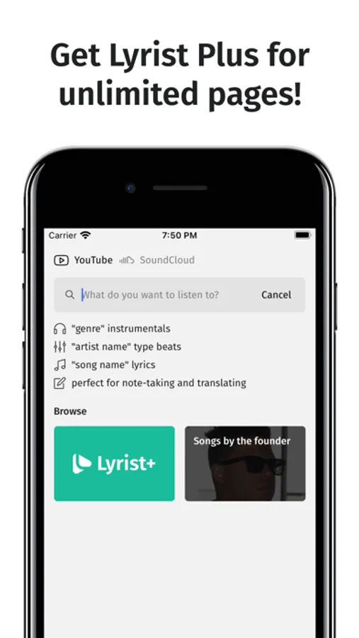 Lyrist is THE toolkit for songwriters and cover artists to write while listening to audio on the same screen. Search music, write songs, make poetry, get rhyme suggestions, and take notes without ever leaving the app. Say goodbye to juggling multiple tools and platforms!
