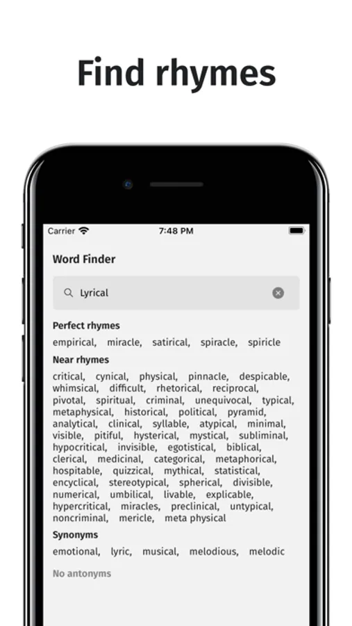 Searching for the perfect word to complete your masterpiece? Use the Word Finder as a rhyming dictionary or thesaurus.