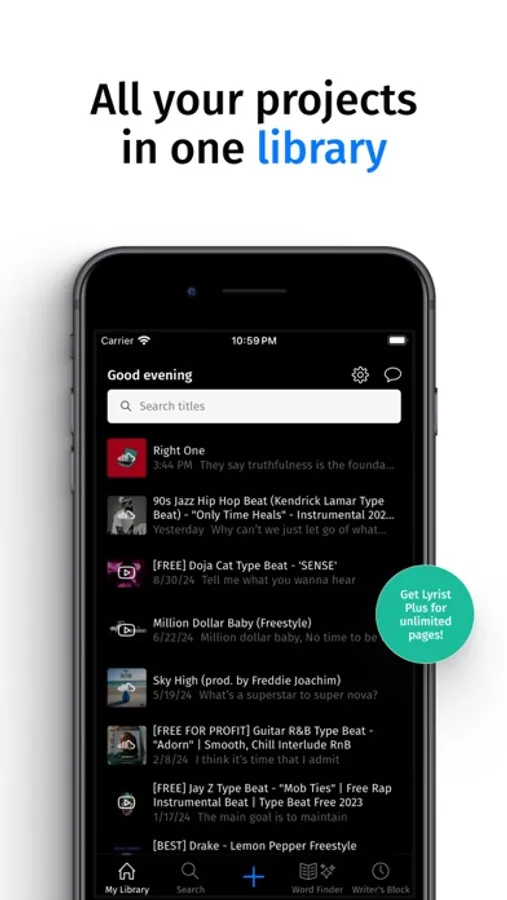 Lyrist offers a free tier, allowing you to write your first few pages. Subscribe or make a one-time purchase for Lyrist Plus and embrace the freedom of writing unlimited pages.