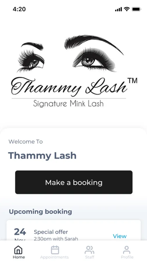 The Thammy Lash app makes booking your appointments and managing your loyalty points even easier. You're just a few taps away from feeling good and looking great!