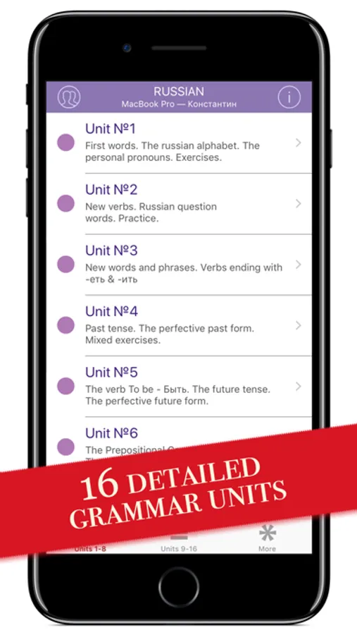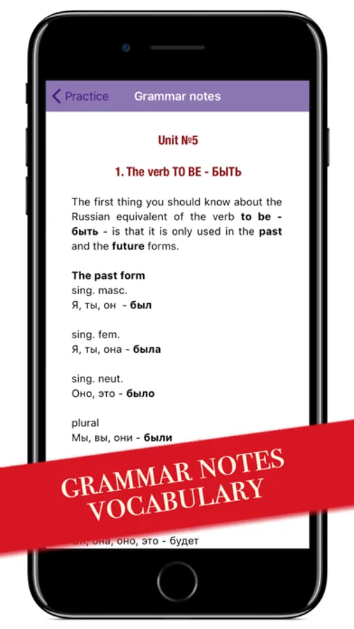 After 16 lessons you will master the basic Russian grammar and remember more than 500 Russian words. Effective exercises will help you practice grammar and vocabulary.
