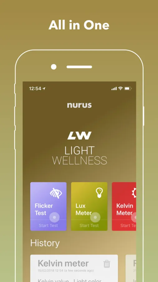 NURUS Light wellness uygulaması ile kullanıcı ışık kaynaklarının kalitesini ve değerlerini ölçebilir.