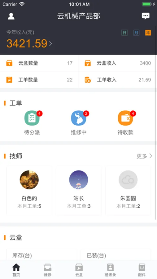 云机械商户版APP主要用于服务工程机械类的维修店、维修技师和配件店等。APP主要功能有维修工单创建、追踪、支付和结算以及客户CRM管理,让维修店、维修技师和机主都能享受快捷工单管理体验。