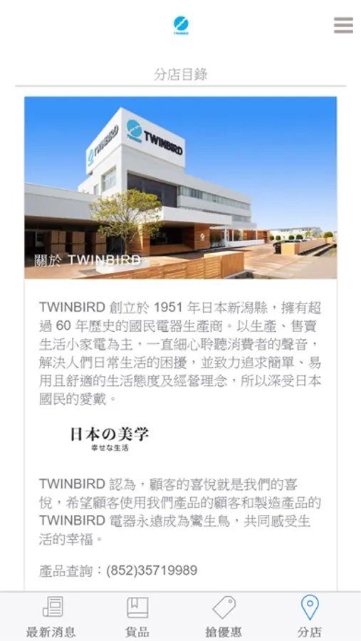Twinbird 創立於 1951 年日本新潟縣,擁有超過 60 年歷史的國民電器生產商。以生產、售賣生活小家電為主,一直細心聆聽消費者的聲音,解決人們日常生活的困擾,並致力追求簡單、易用且舒適的生活態度及經營理念,所以深受日本國民的愛戴。