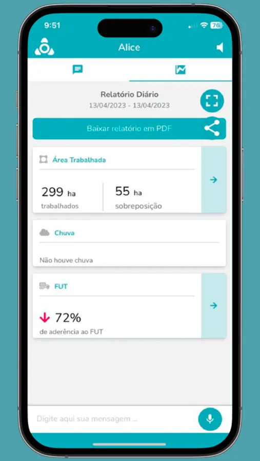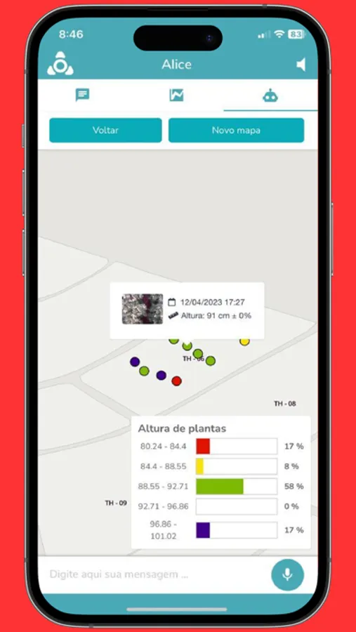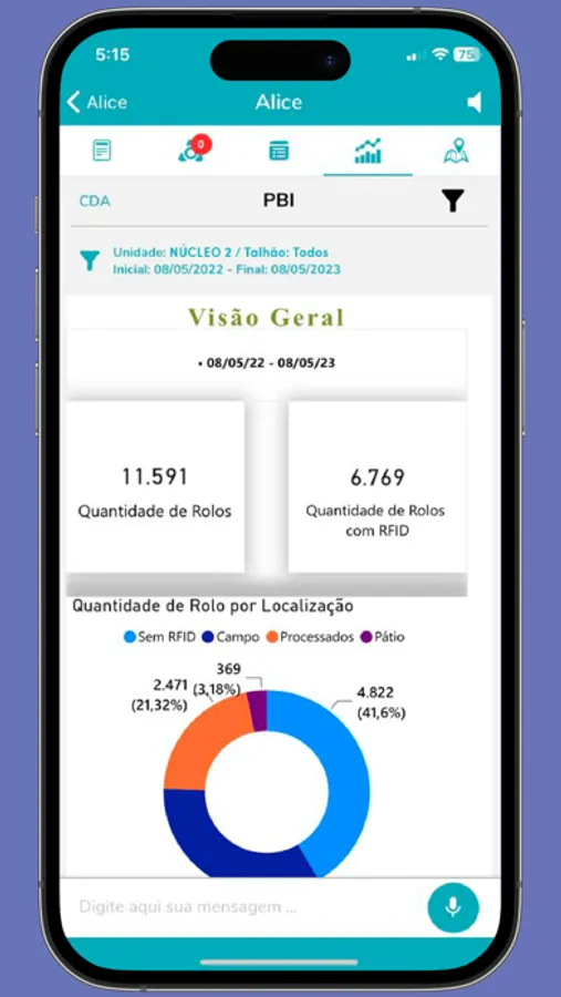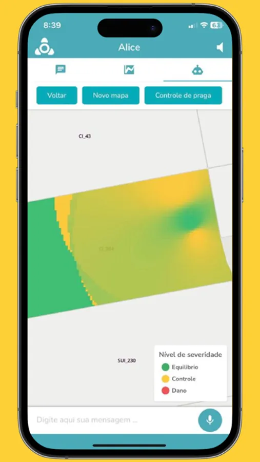 Alice was developed with the purpose of assisting SGPA ("Sistema de Gerenciamento de Processos Agrícolas" in Portuguese) users with navigation and data presentation of the named software.