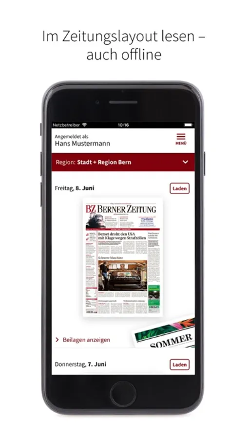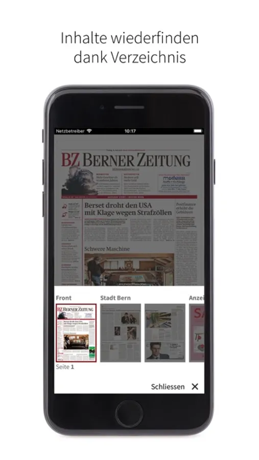 Die App können Sie kostenlos herunterladen. Abonnenten der gedruckten BZ Berner Zeitung lesen uneingeschränkt alle Ausgaben ohne zusätzliche Kosten. Alle anderen Nutzer können bei Bedarf Einzelausgaben (CHF 2.00) oder ein passendes Abo in der App kaufen.
