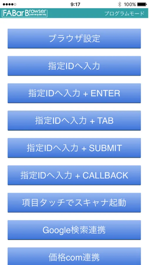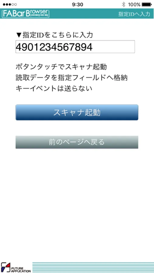 FABarBrowserは内蔵カメラをバーコードリーダーとして使えるカスタムブラウザーです。