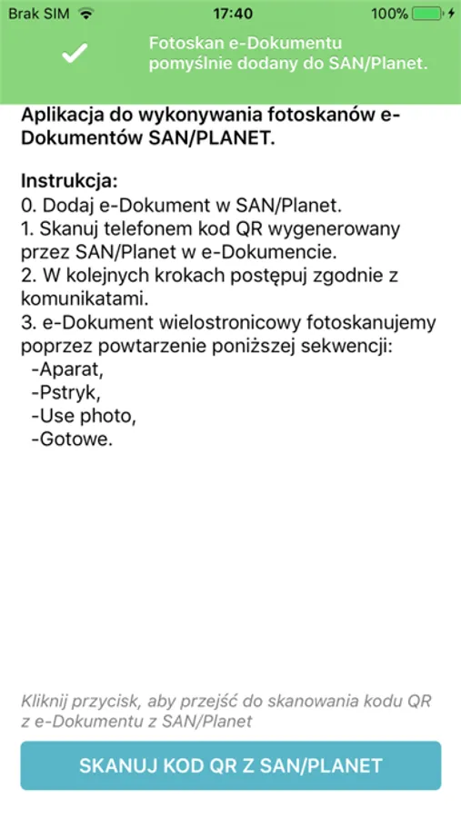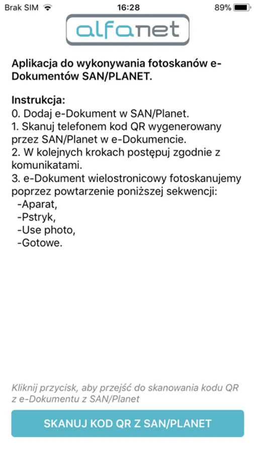 Aplikacja AN Fotoskan służy do szybkiego i prostego tworzenia skanów dokumentów papierowych a następnie umieszczania ich w systemie SAN/PLANET by ALFA-NET.