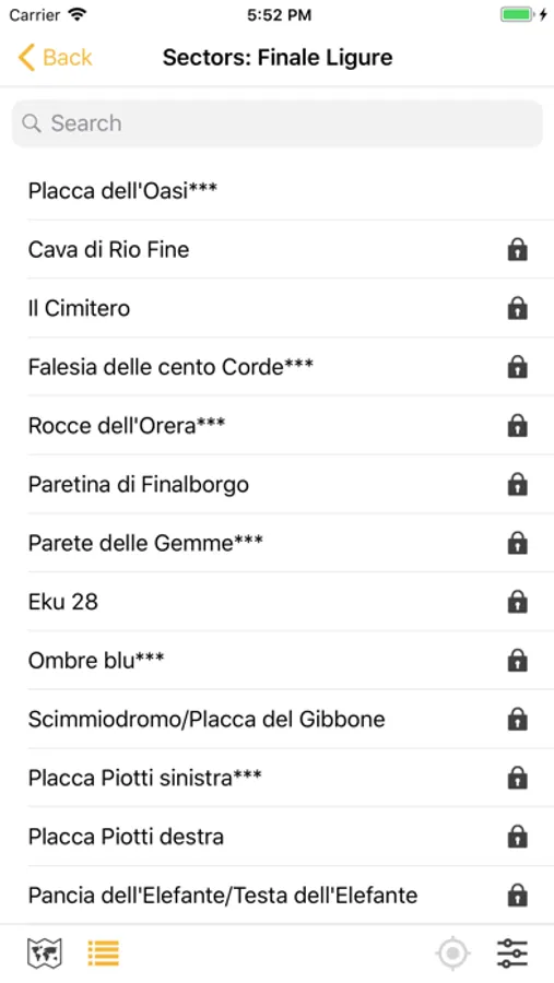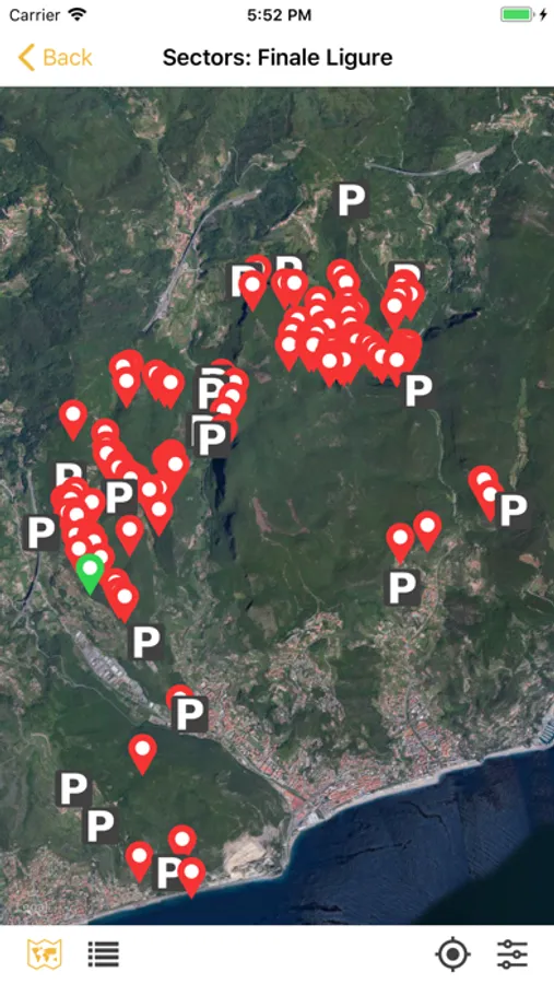 Select map of your sector in the menu bar-you will see your position and the climbing sector