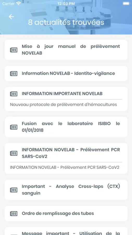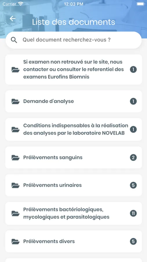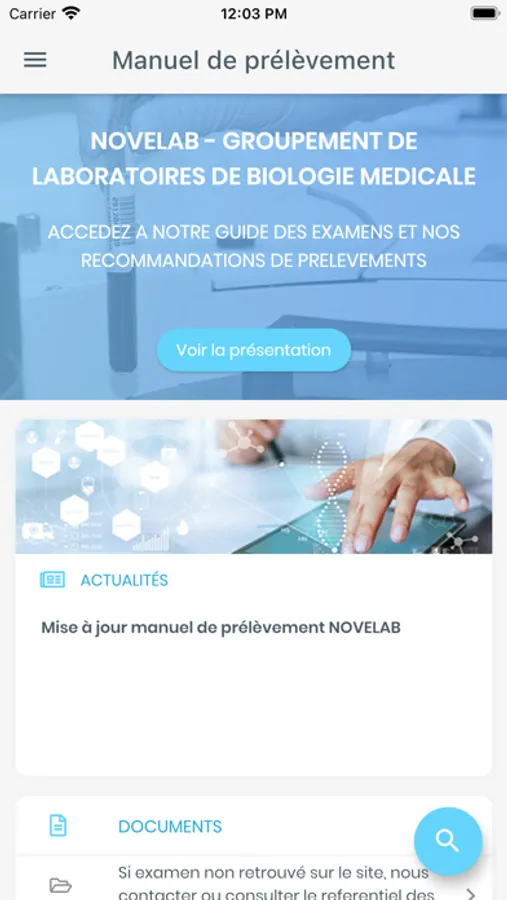 Grâce à cette application, retrouvez l'ensemble du catalogue des examens du groupe Novelab.