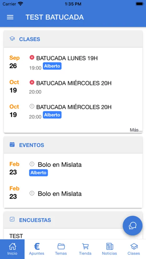 Desde la app podremos seguir en tiempo real las actividades de nuestra asociación, banda de música, batucada, academia de baile, falla o cualquier otra entidad que gestiona grupos.