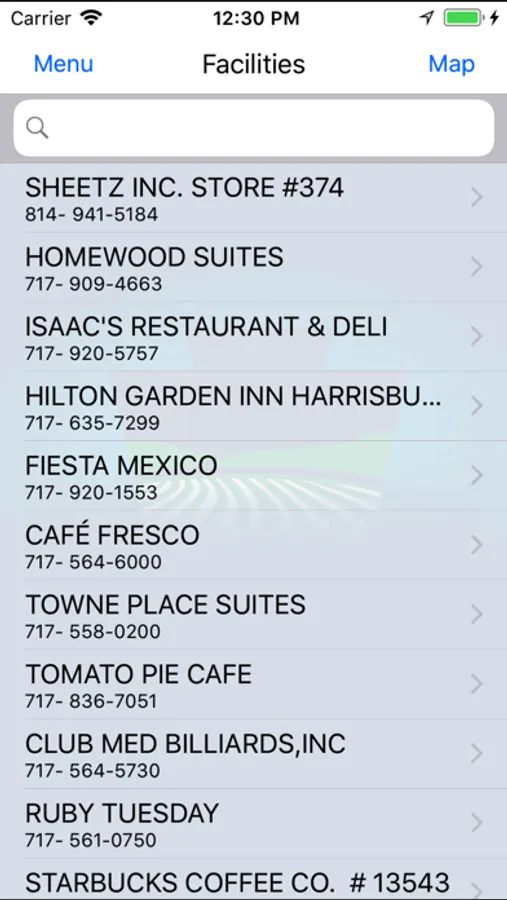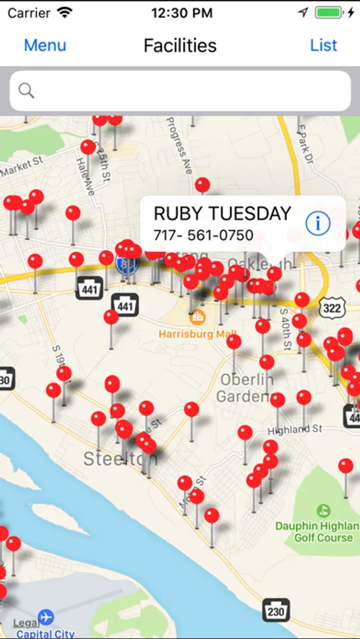 o Pinpoint restaurants/food establishments on the map and show their address and phone number